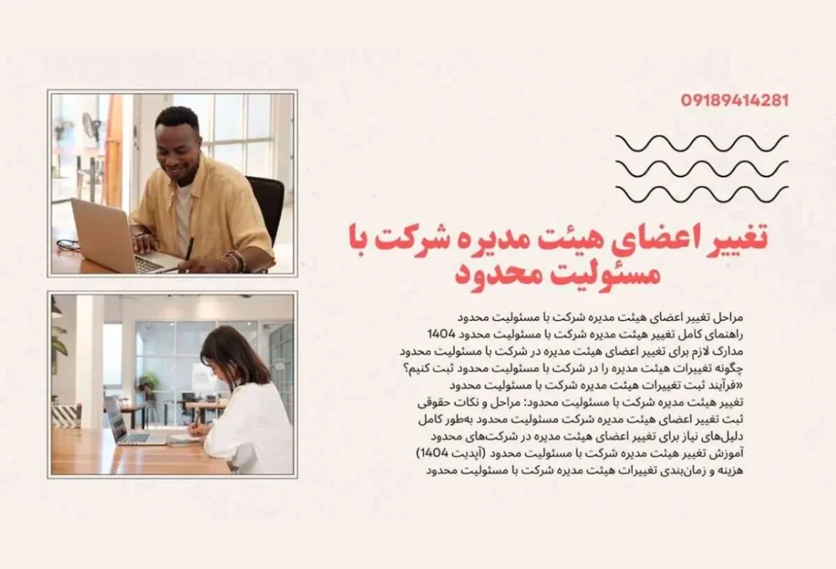 تغییر اعضای هیئت مدیره شرکت با مسئولیت محدود (آپدیت ۱۴۰۴) با مراحل کامل و قانونی تغییر اعضای هیئت مدیره شرکت با مسئولیت محدود آشنا شوید. از مدارک لازم تا ثبت نهایی، همه چیز را در این راهنمای کاربردی بخوانید و از اشتباهات رایج بپرهیزید. مقدمه: چرا باید فرآیند تغییر اعضای هیئت مدیره را جدی
